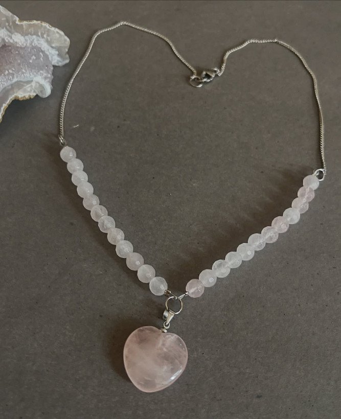 گردنبند رزکوارتز به همراه زنجیر نقره ای