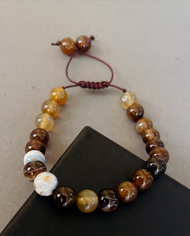 دستبند سنگ طبیعی عقیق قهوه ای سایز ۸ میل