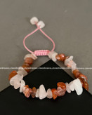 دستبند سنگ نامنظم رز کوارتز و کارنلین