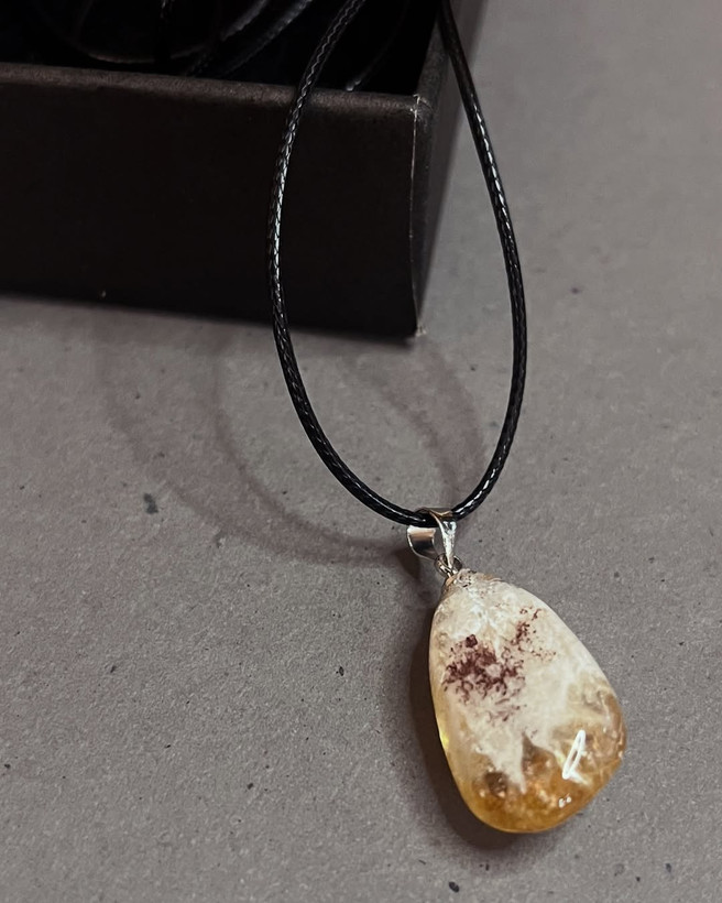 گردنبند سنگ طبیعی سیترین با بند چرمی