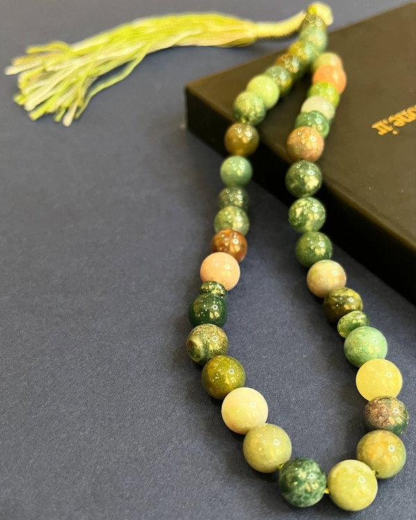تسبیح سنگ طبیعی عقیق خزه ای جذااااااااب(تعداد مهره ۳۳ عدد) خواص معنوی سنگ عقیق خزه ای مناسب برای کاهش استرس و اضطراب، انرژیبخش برای کسانی که به دنبال آرامش ذهنی هستند. افزایش آرامش و تمرکز ذهنی، مناسب برای افرادی که در کارهای خلاقانه فعالیت دارند. انرژیبخش و تقویتکننده اعتماد به نفس؛ بهویژه برای افرادی که نیاز به تقویت روحیه و خودباوری دارند.