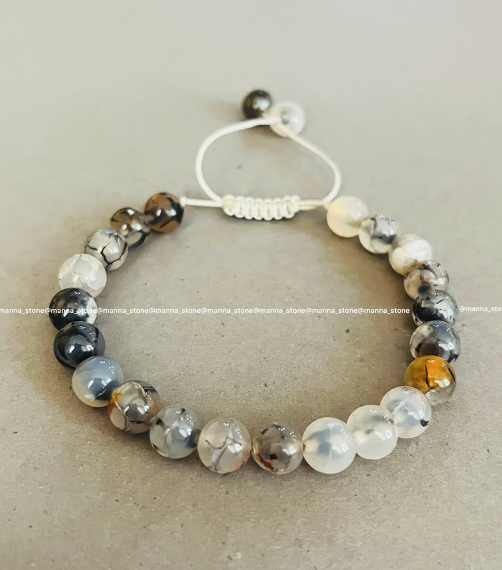 دستبند سنگ طبیعی عقیق شجر خاکستری خواص سنگ عقیق شجر از جمله مهمترین فواید سنگ شجر اصل میتوان به افزایش رزق و روزی، دوری از فقر، تقویت عضلات قلب و بهبود گردش خون، و همچنین بهبود عملکرد معده اشاره داشت. برخی عقیده دارند که طرحهای خاص و زیبای شجر به دلیل رعد و برق ایجاد شدهاند. یکی از دلایل محبوبیت بالای شجر، جدا از زیبایی بینظیر آن، خواص و فوایدی است که به همراه دارد. این سنگ میتواند ثبات درونی، بلوغ و خونسردی را تقویت کرده و در انسان احساس امنیت و اعتماد به نفس را افزایش دهد. از جمله مهمترین خواص سنگ شجر شمس و دیگر انواع شجر میتوان به ایجاد احساس شهامت و شجاعت و بهبود عملکردهای ذهنی اشاره داشت. این سنگ میتواند بر جنبههای مختلف زندگی شما تاثیر داشته و تعادل روحی و جسمی را افزایش دهد.سایز مهره ها ۸میل هستند
