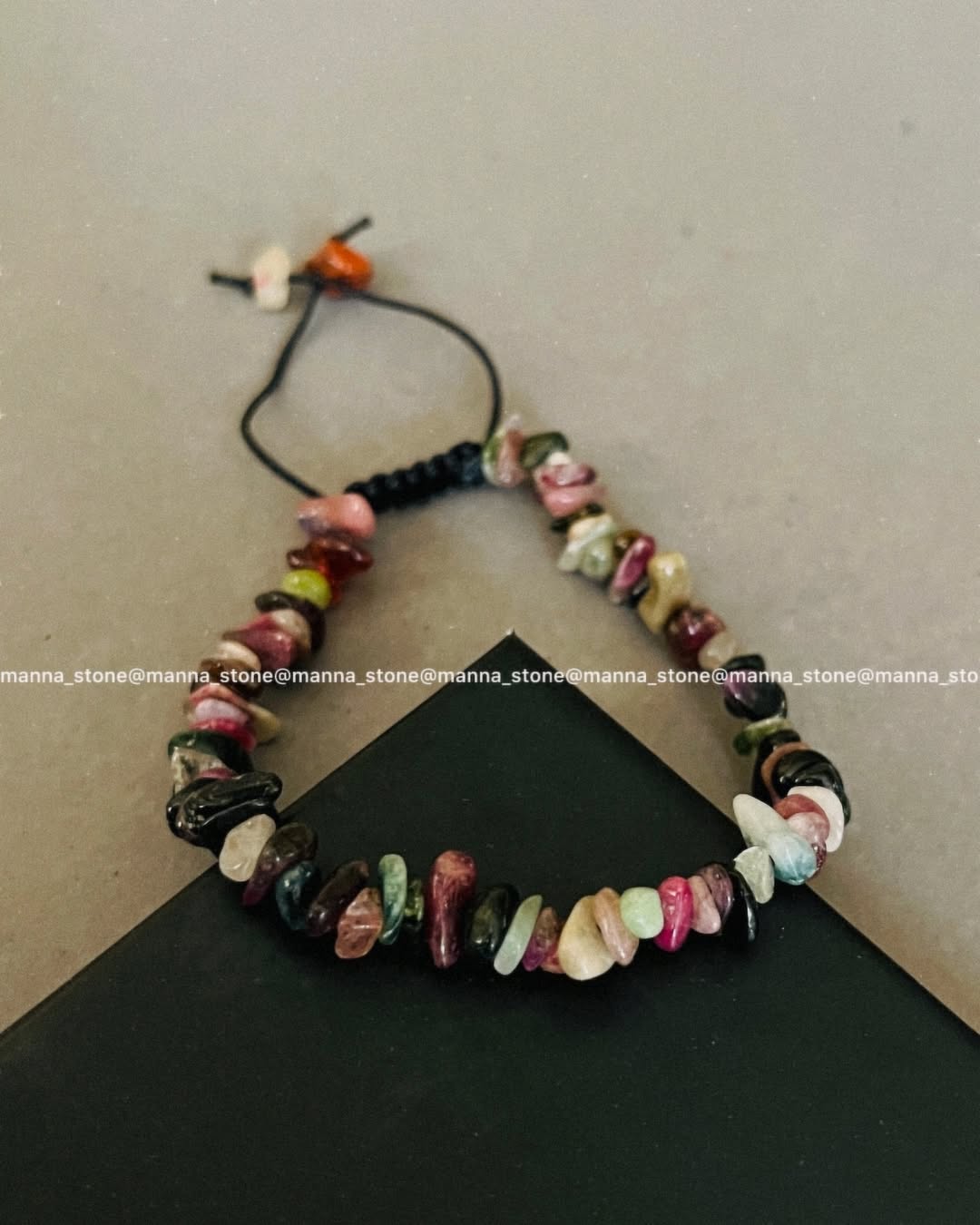 دستبند سنگ تراش نامنظم تورمالین هندوانه ای
